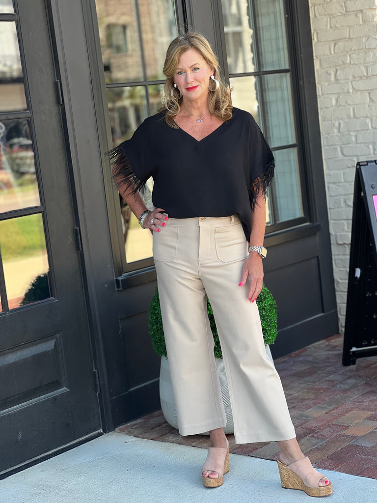 Straight Leg Ruffled Hem Pant- Black