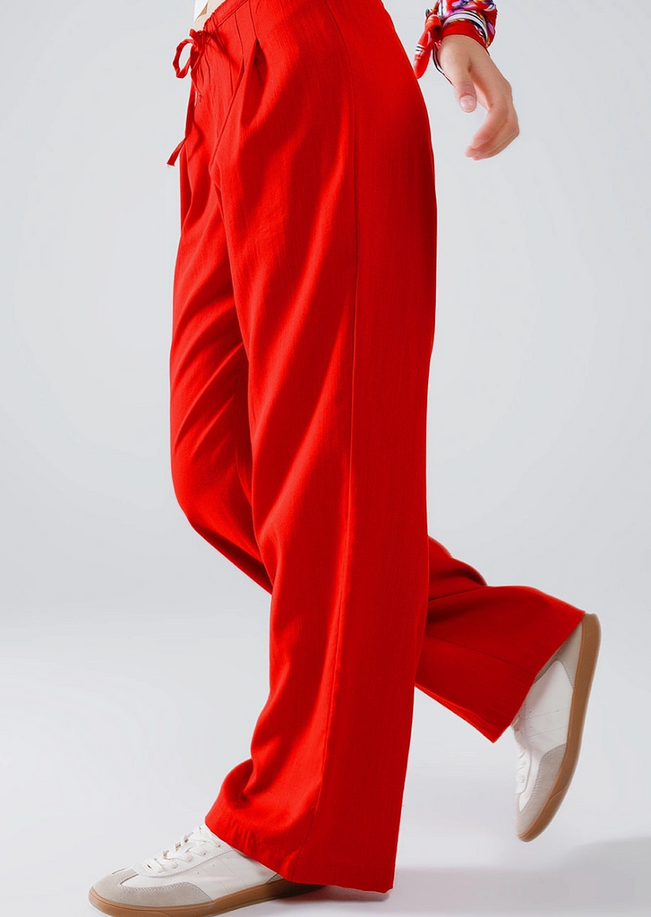 Relaxed Fit Drawstring Pant- Red