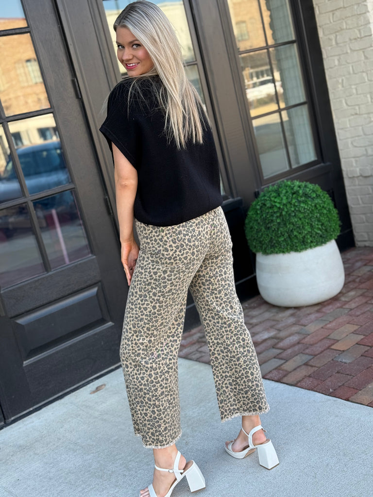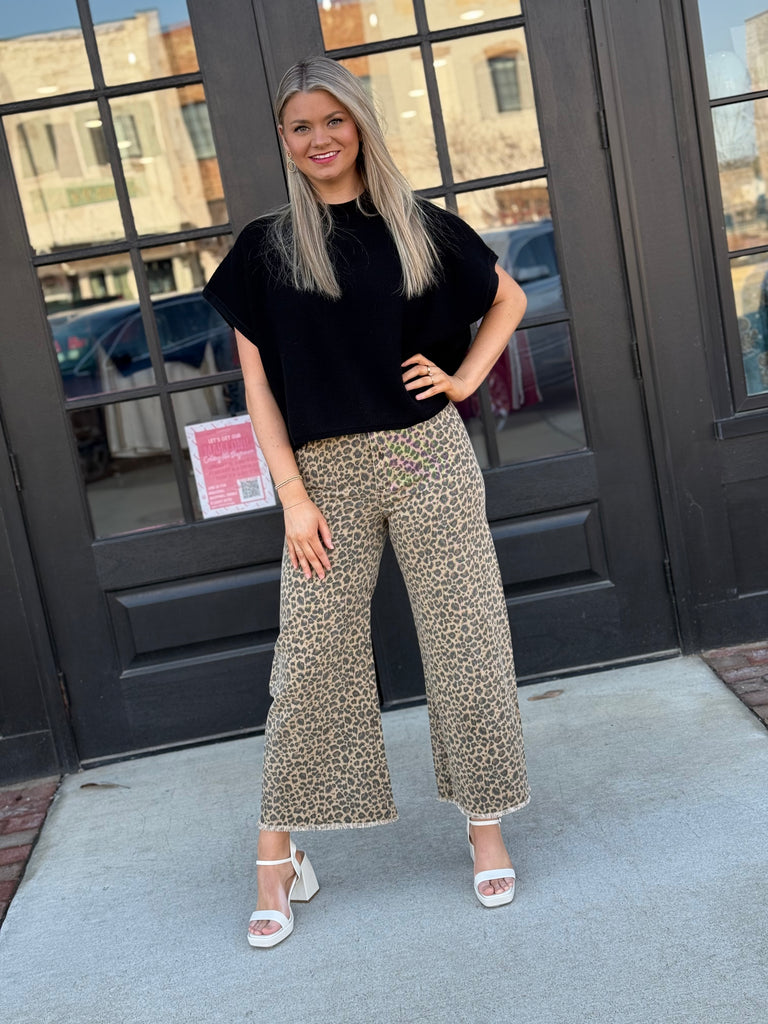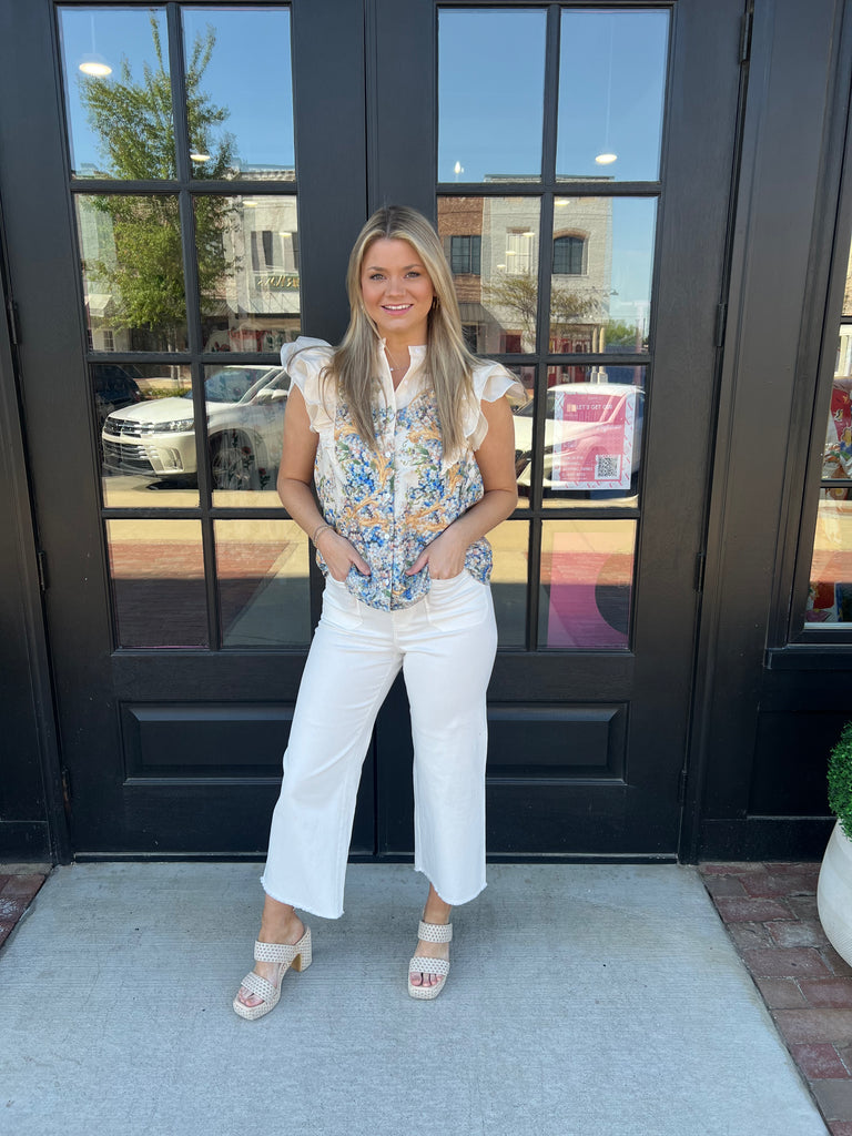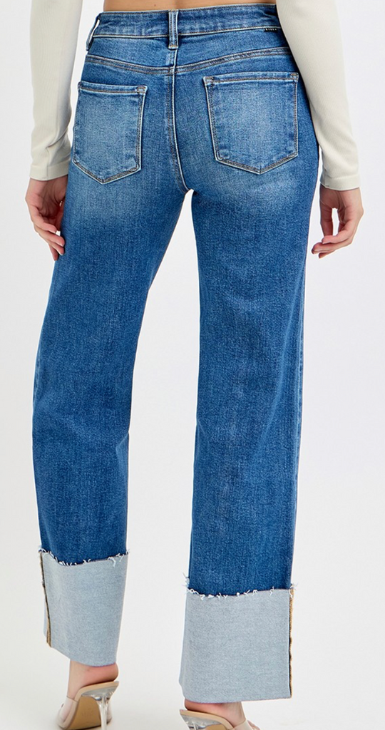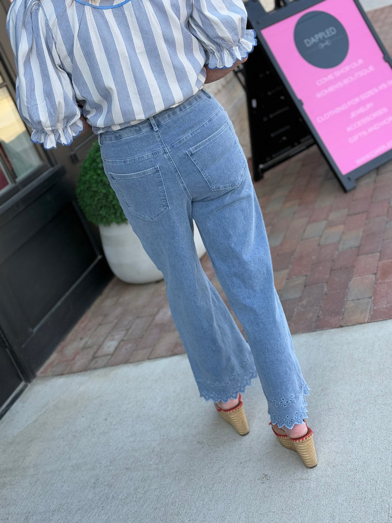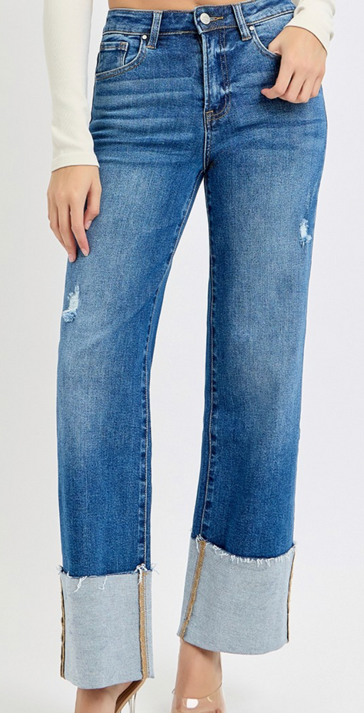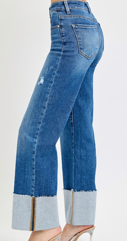 Risen Tummy Control Crop Adjustable Waist Wide Leg Jeans