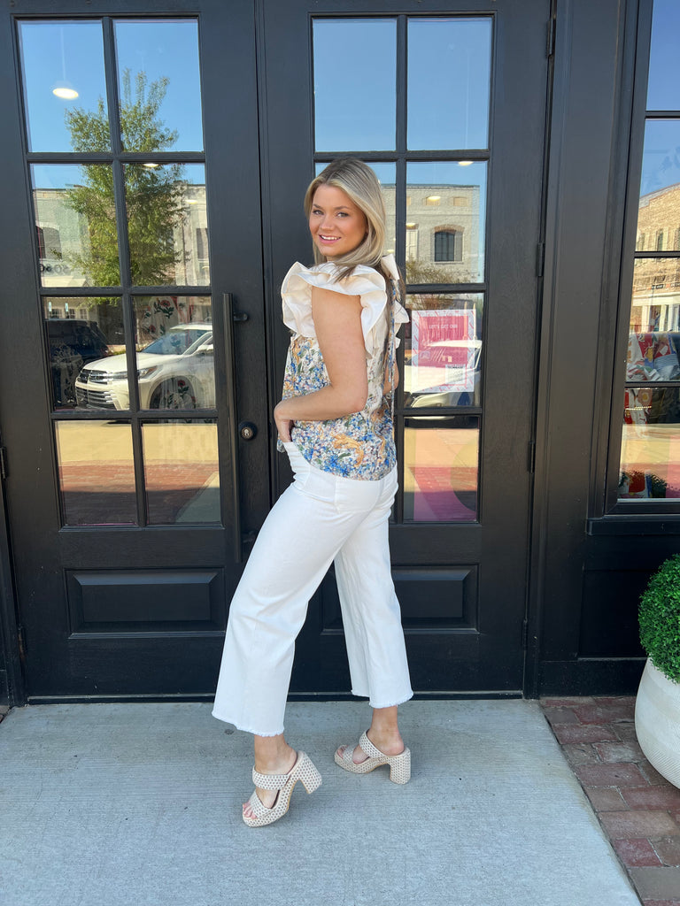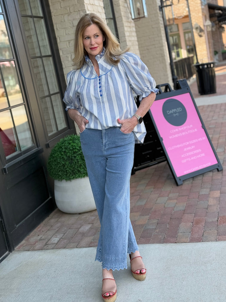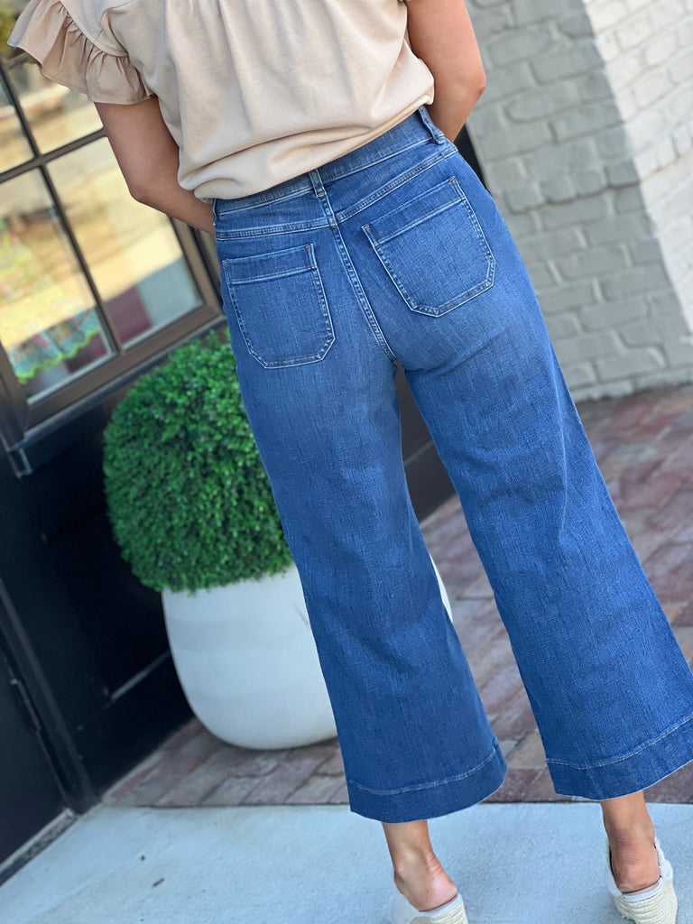 Spanx- Cropped Wide Leg Jean Shaded Blue