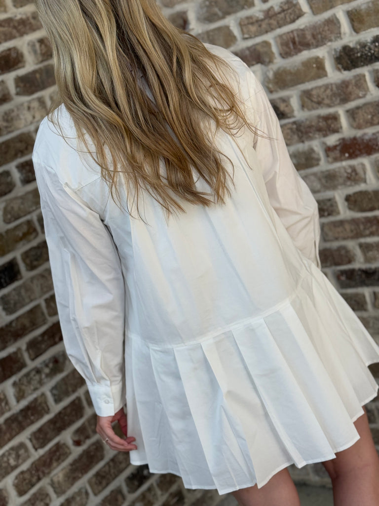 Pleated Perfectly Dress- White