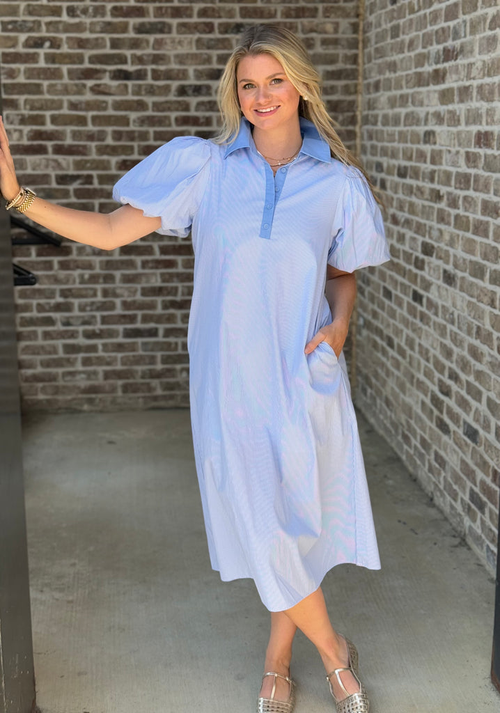 Striped Maxi Shirt Dress- Blue