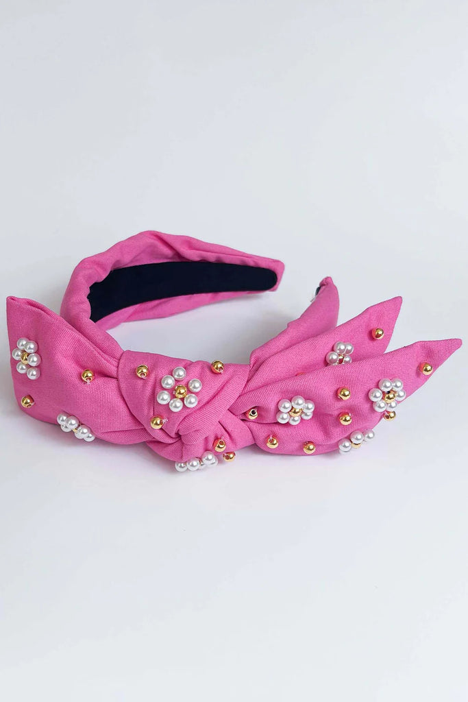 Beaded Hat/Hair Band-Bright Pink/Navy