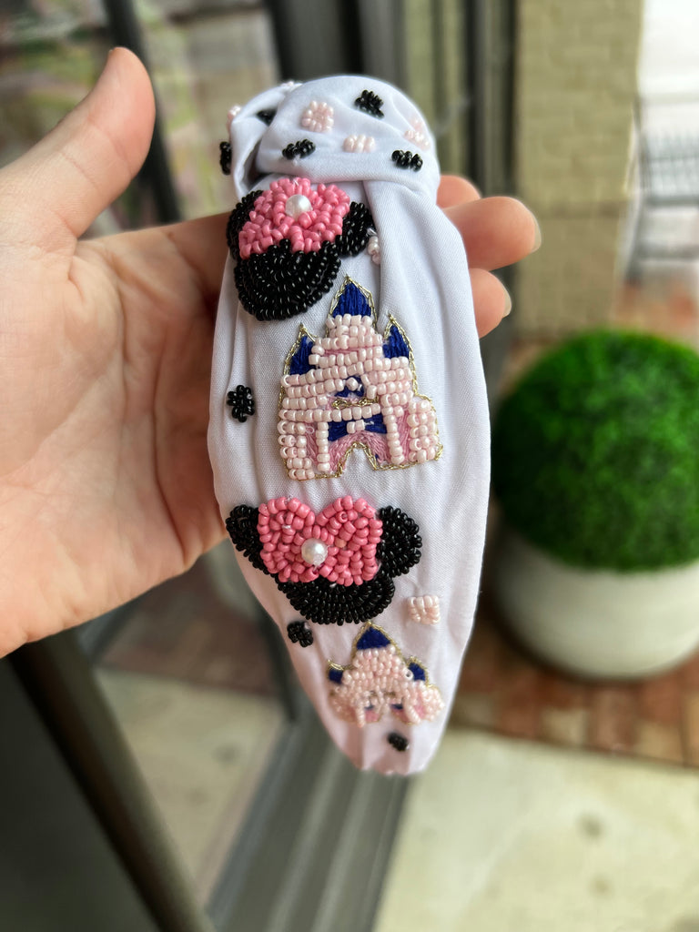 Beaded Hat/Hair Band-Colorblock Pink