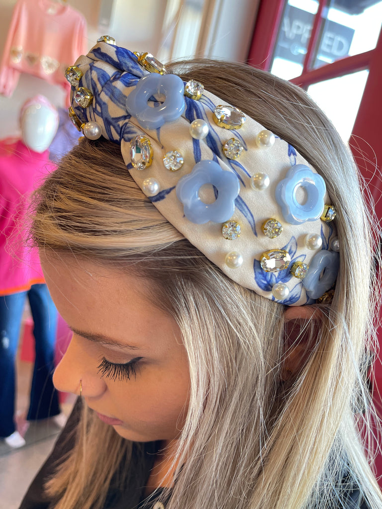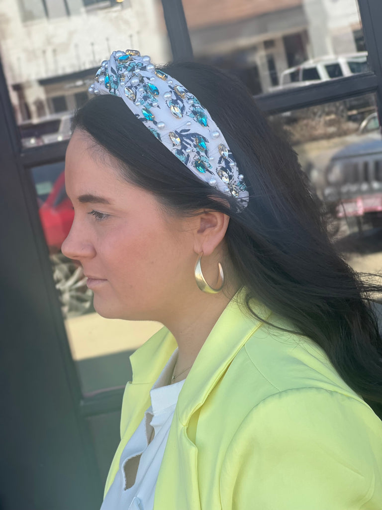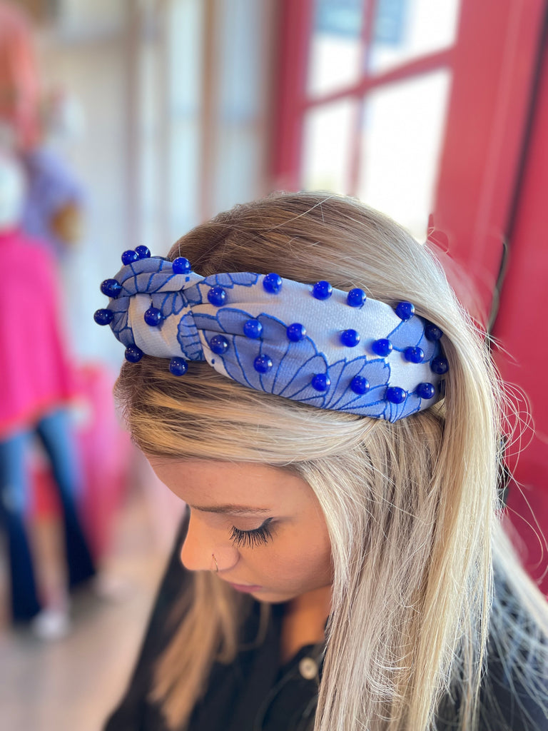 Beaded Hat/Hair Band-Blue Stripe