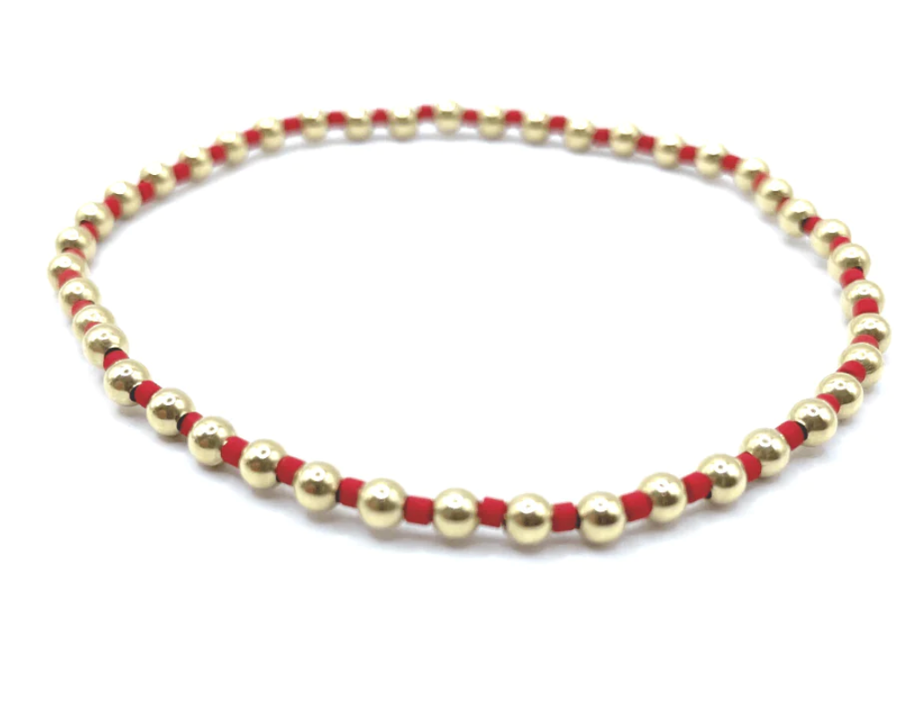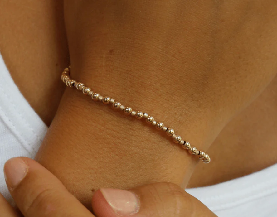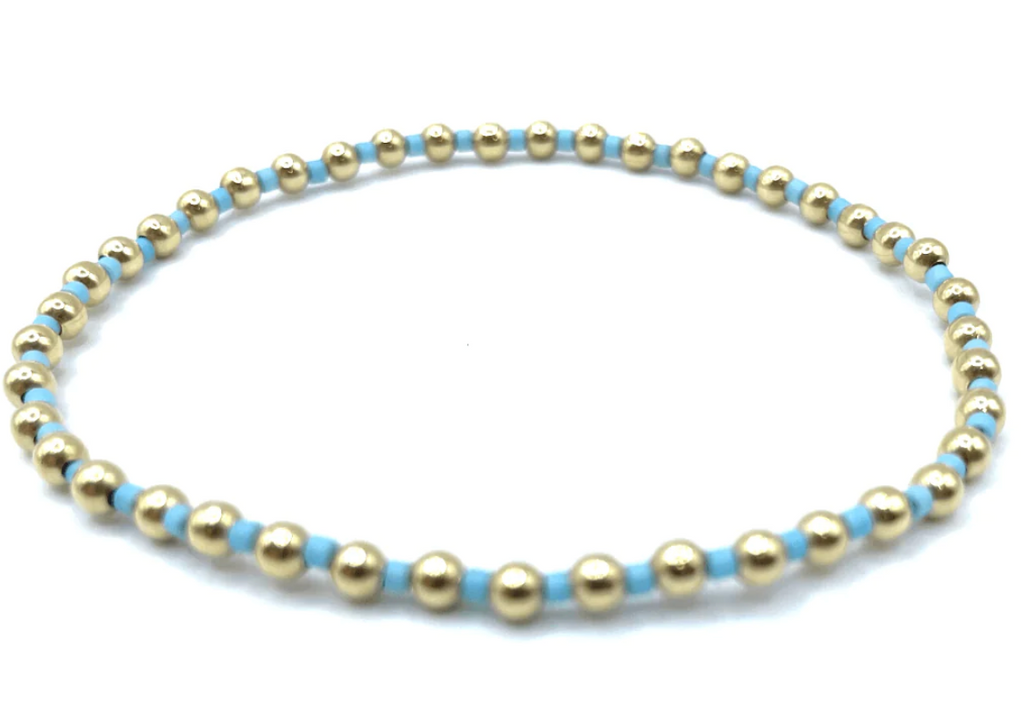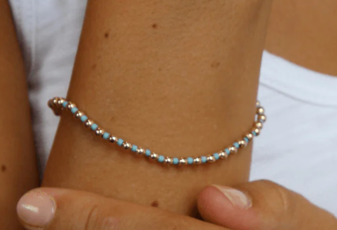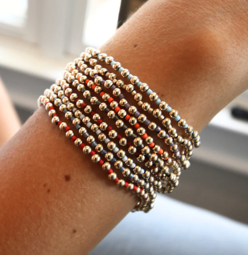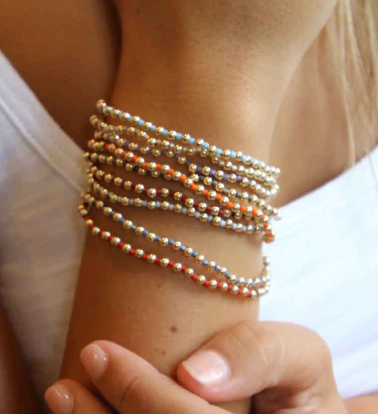 Our Color Crush Collection bracelets include delicate colorful beads dotted with 3mm gold filled beads. Perfect for stacking! Part of our erin gray waterproof collection. Available in 7" bracelets.