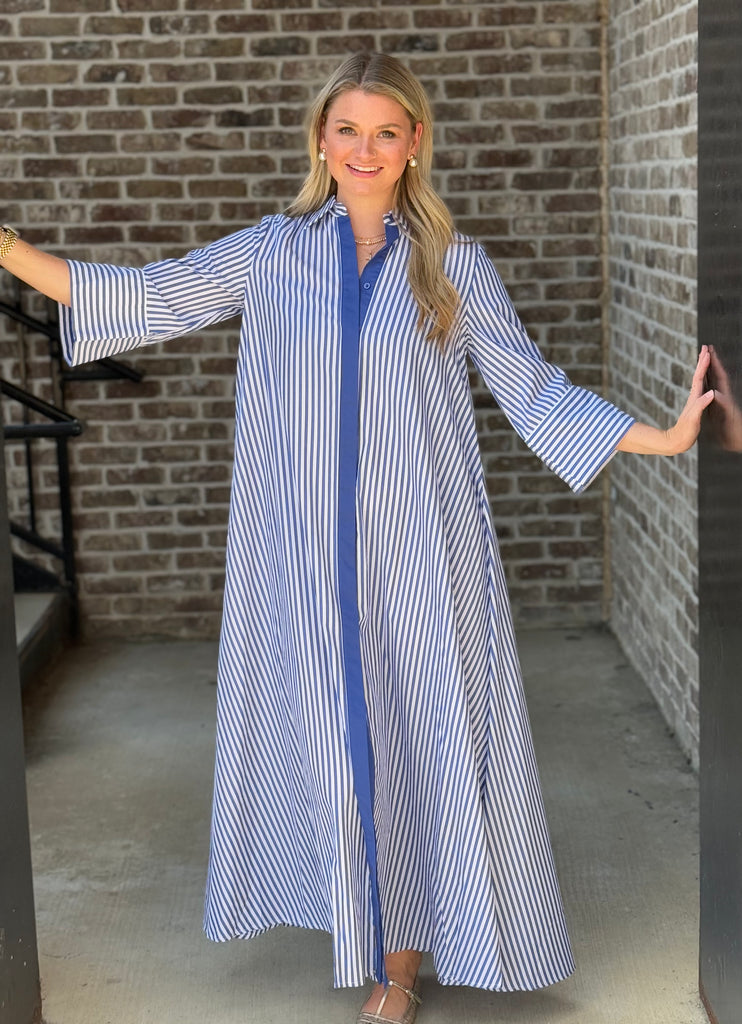 Striped Maxi Shirt Dress- Blue