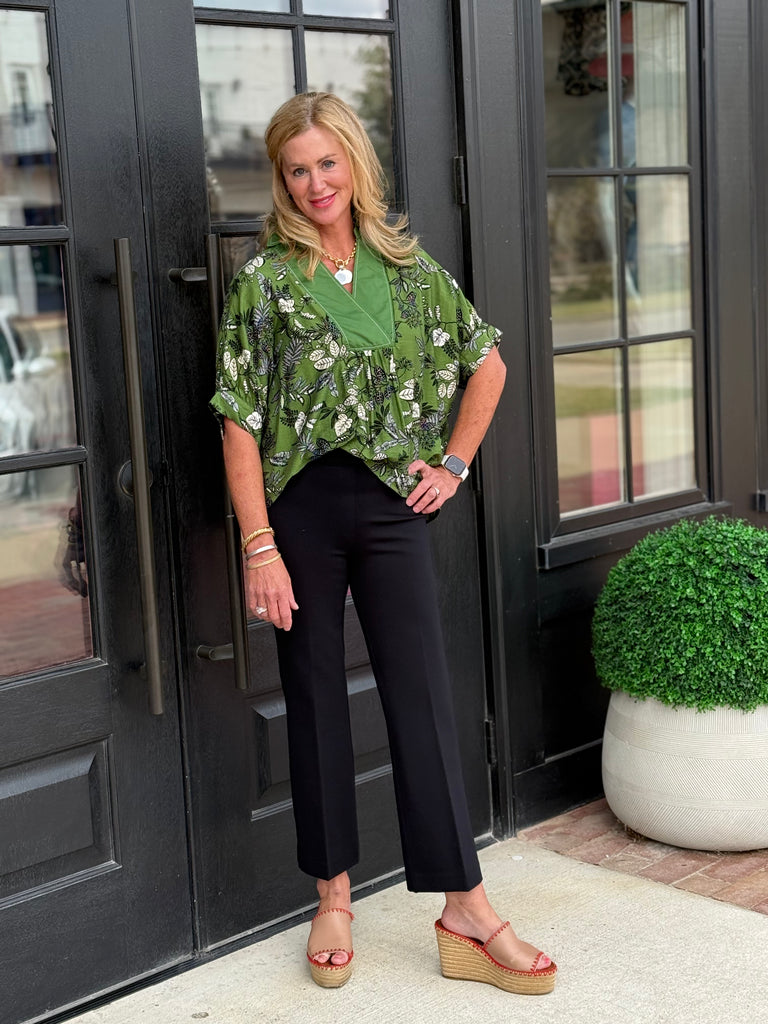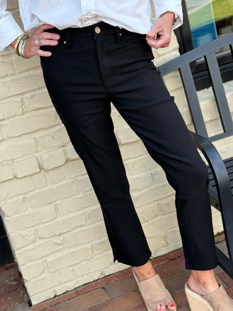 Risen Tummy Control Crop Adjustable Waist Wide Leg Jeans
