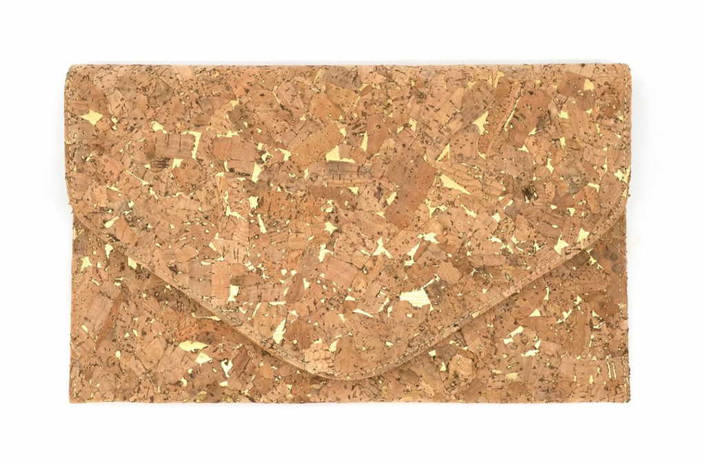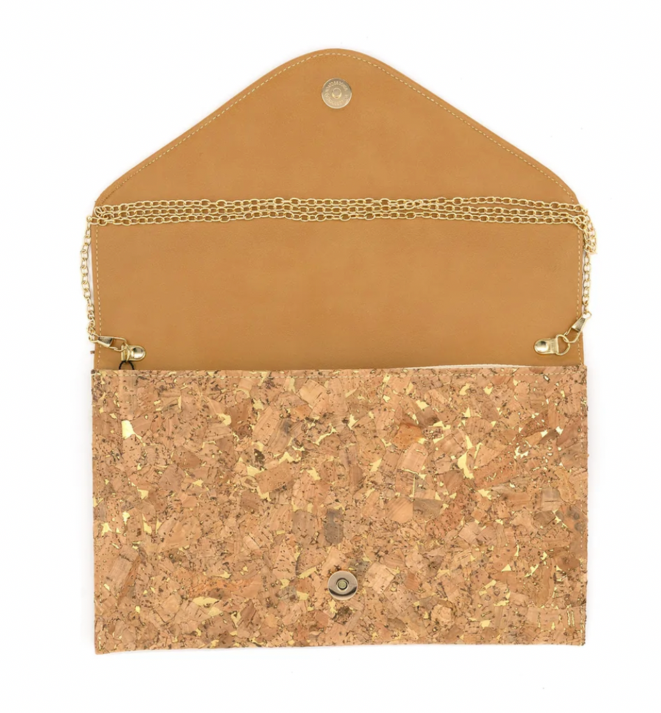 The perfect clutch for all your outfits this season. Our Cork Clutch features a flap closure with snap and removable gold chain crossbody strap.