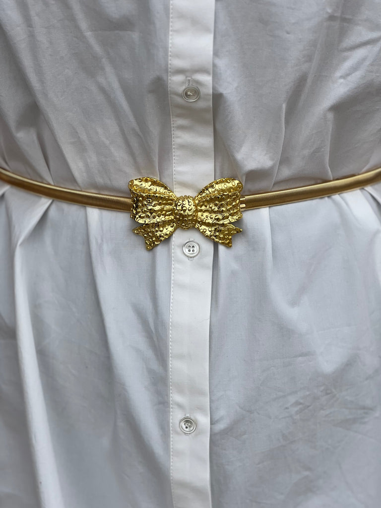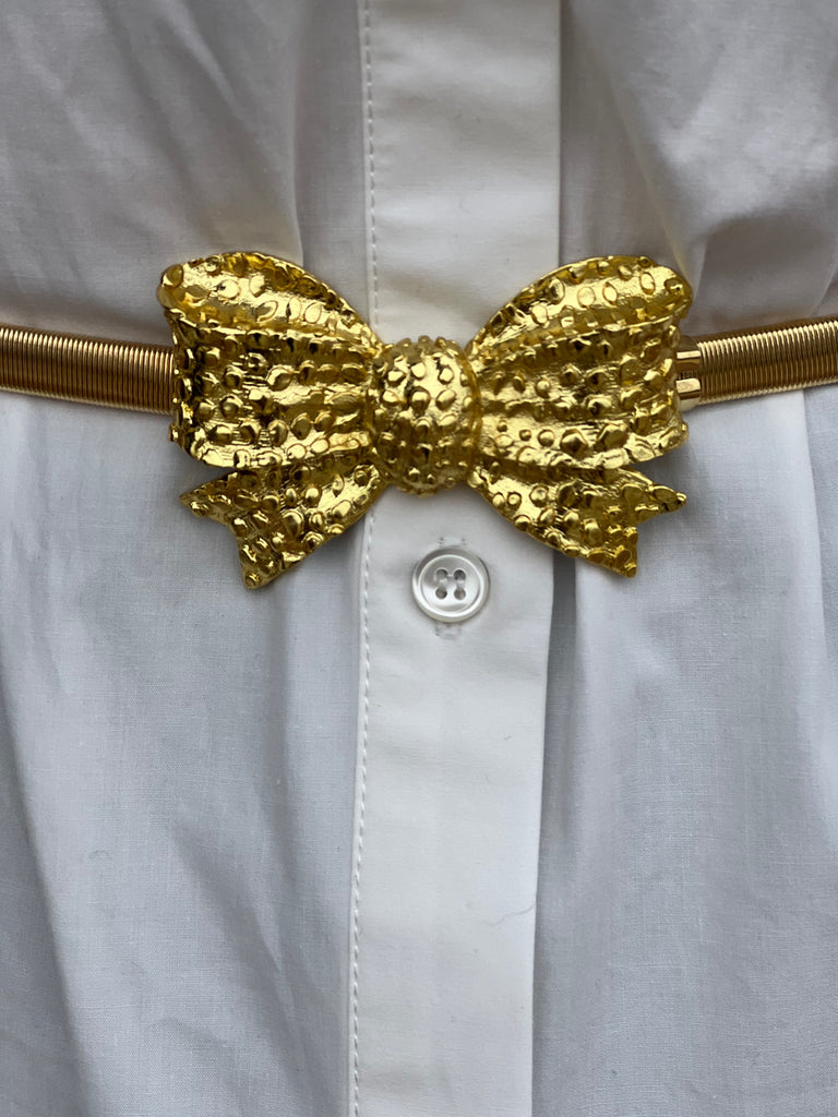 Unleash your inner fashionista with our luxurious Golden Bow and Belt Set. This timeless and classic accessory is perfect for elevating any outfit, whether it's a dress, jumpsuit, jeans, or slacks. The perfect finishing touch to any look, our set exudes elegance and sophistication.