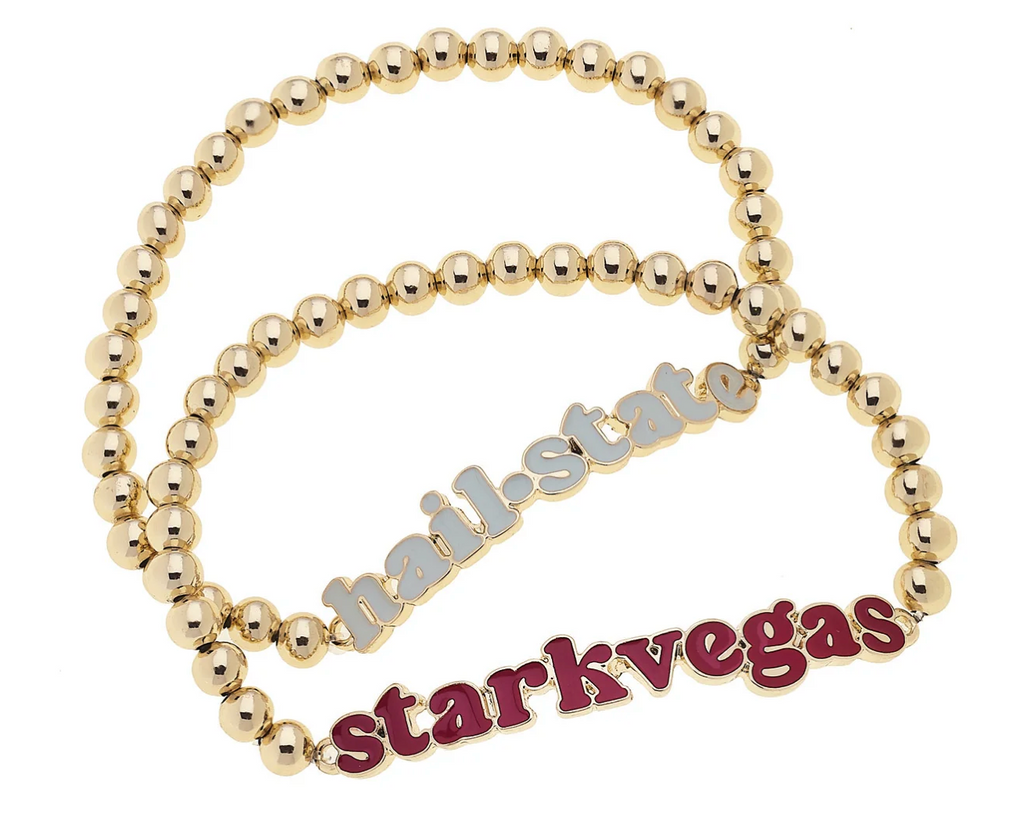 Cheer on your team in style with this Slogan Ball Bead Bracelet Set. Featuring two stretch bracelets, this set is perfect for stacking or sharing with a fellow fan. Lightweight, spirited, and full of pride!